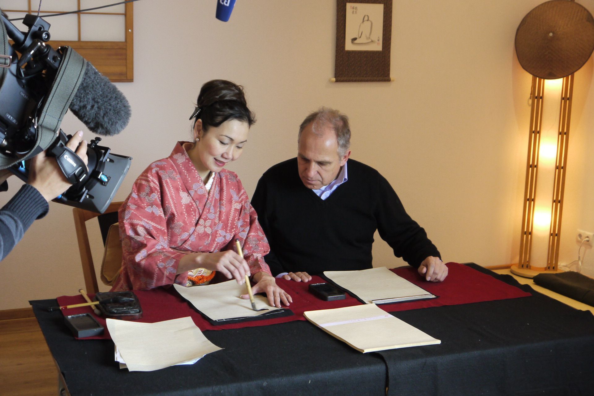 Der bekannte Karrikaturist und Erfolgsbuchautor Werner Tiki Küstenmacher (Simplify your life) kam mit einem Fernsehteam ins ZenHaus um die traditionellen japanischen Zen Künste kennenzulernen und zu erfahren.